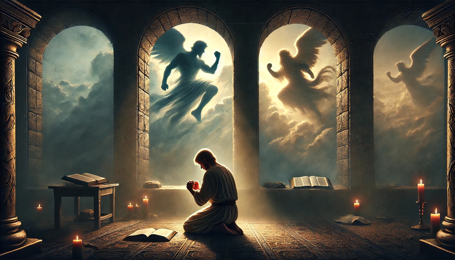 Après 21 jours, un ange apparaît — puissant, impressionnant. Daniel est si bouleversé qu’il tremble et tombe face contre terre.