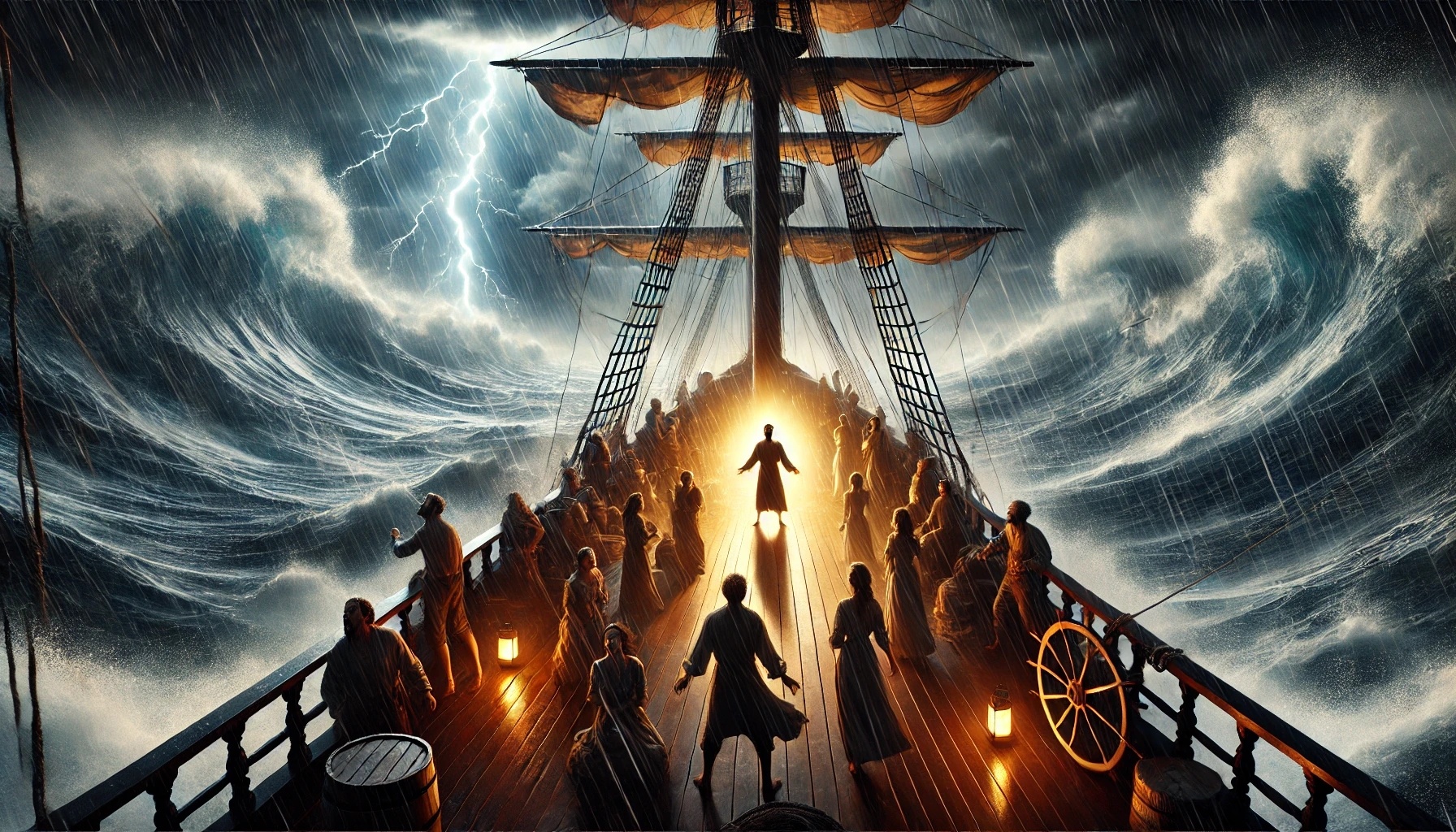 Cette nuit-là en mer, un voyage se transforma en une crise intérieure. Le vent avait d’abord légèrement augmenté, mais en peu de temps, le doux murmure devint une tempête qui secouait le navire. Les vagues frappaient sans cesse la coque, le bois grinçait sous la pression, et la situation menaçait d’échapper à tout contrôle. Pour beaucoup à bord, il devint soudain évident à quel point leur vie était fragile.