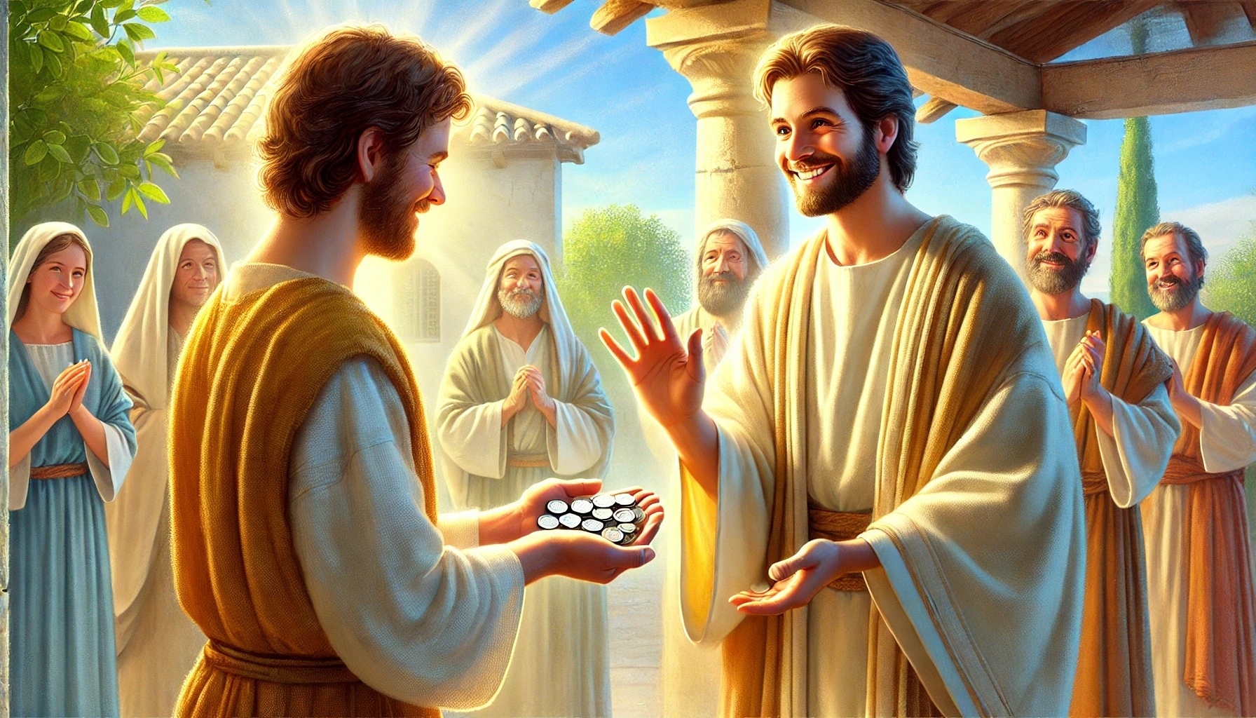 Un homme part en voyage et confie différents talents à ses serviteurs.