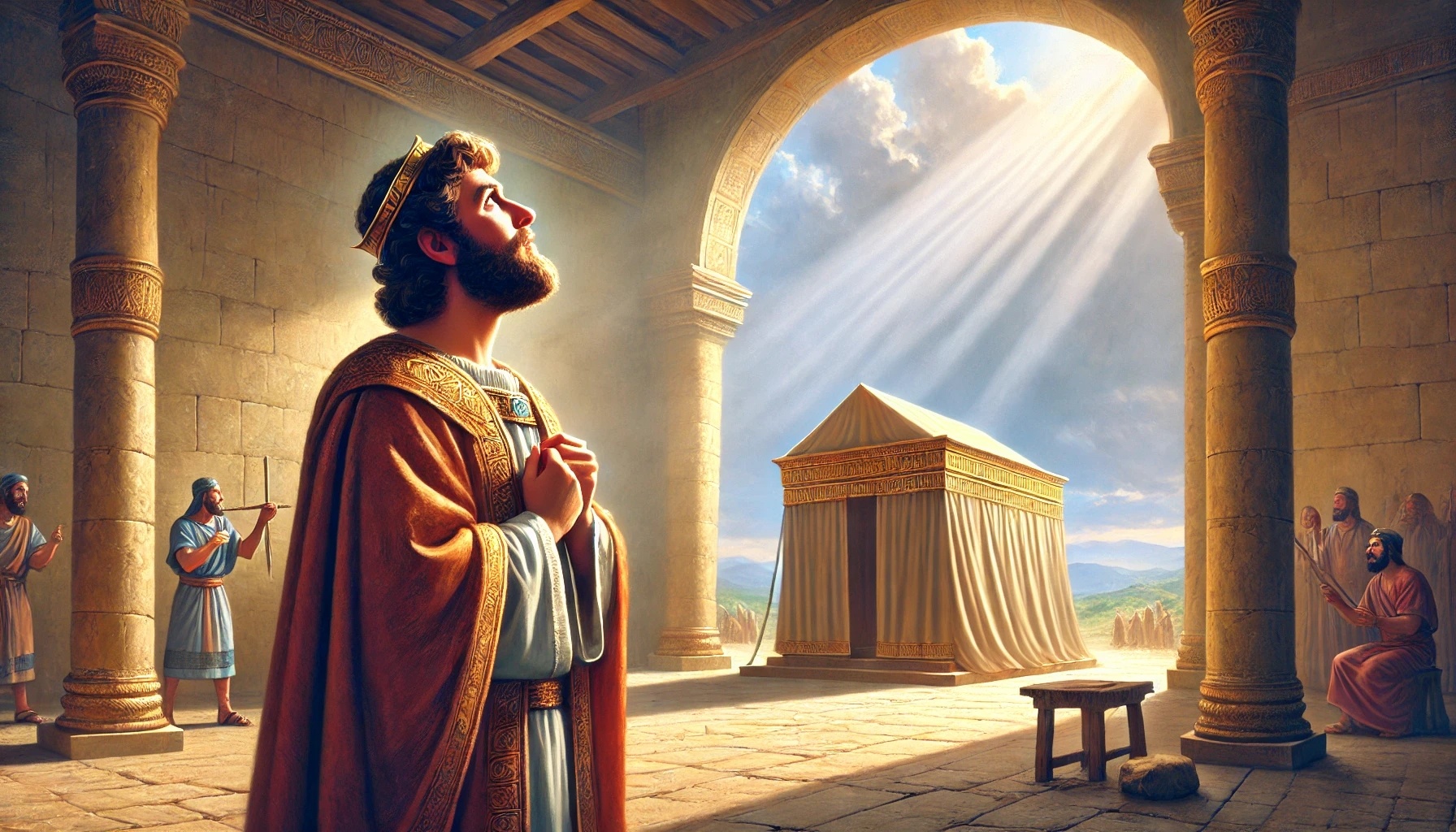 David est assis dans sa maison, entouré de paix et de stabilité. Il regarde sa vie et réalise : lui-même vit dans une maison solide, tandis que l’arche de l’alliance est encore dans une tente. En lui grandit le désir de rendre quelque chose à Dieu — une maison digne de sa présence.