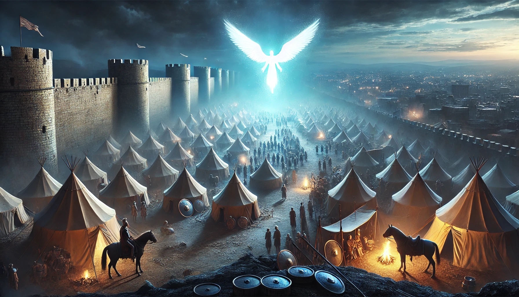 Pendant la nuit, l’inattendu se produit : un ange du Seigneur frappe le camp assyrien, et une grande partie de l’armée meurt. Au matin, les survivants font face à une réalité incompréhensible. Sennachérib se retire et retourne à Ninive. Plus tard, il y est tué par ses propres fils — exactement comme cela avait été annoncé.