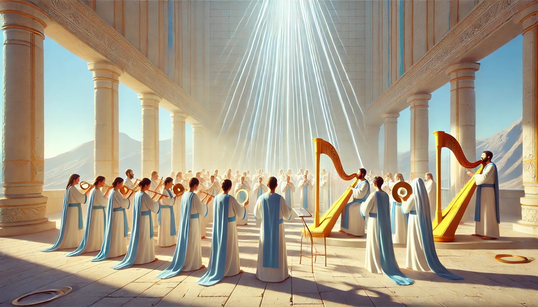 L’atmosphère de ce chapitre est différente — presque audible. Après toutes les ordonnances et répartitions, la musique passe maintenant au premier plan. Des personnes sont choisies pour servir Dieu par le chant et les instruments.