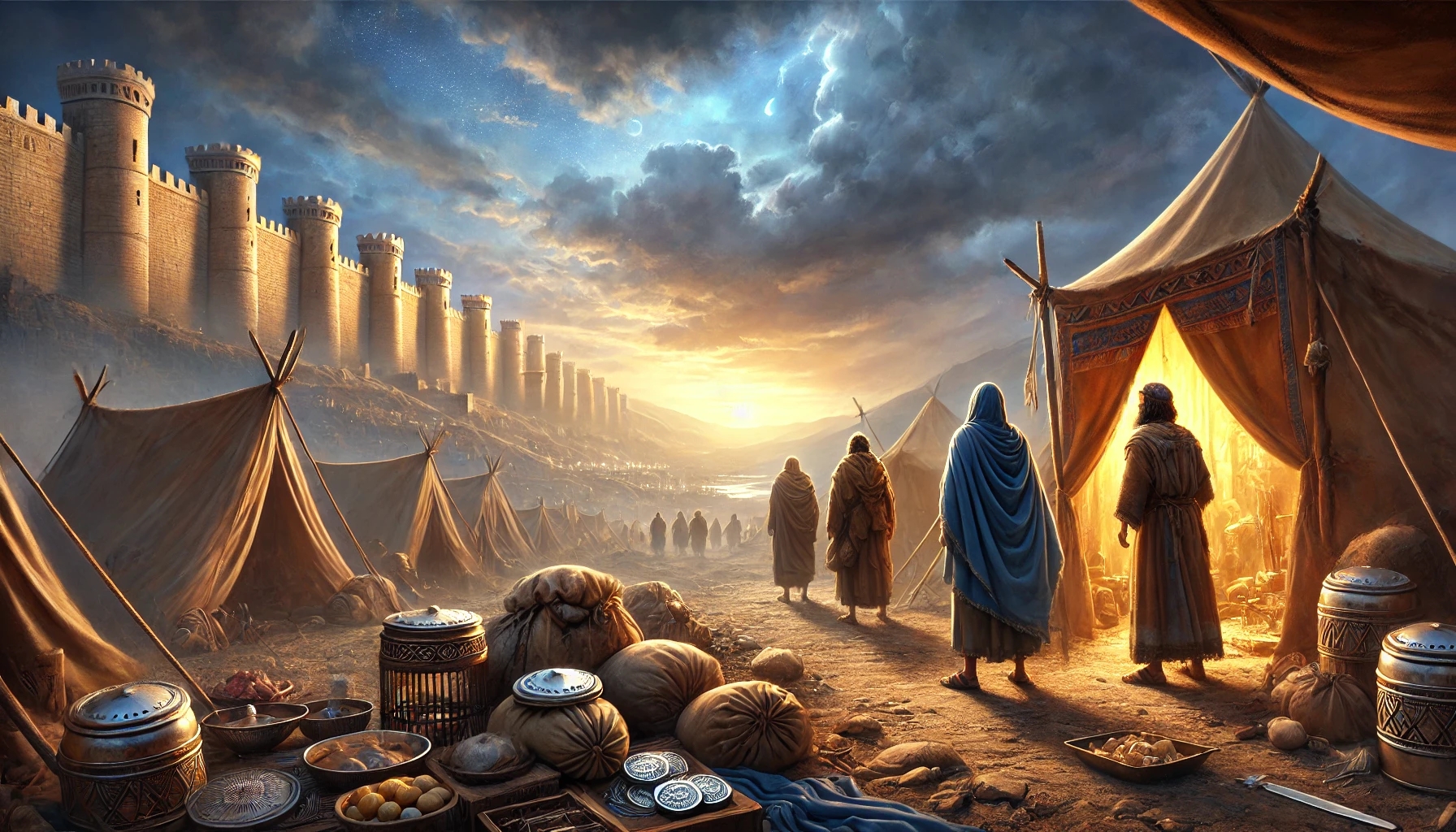 En arrivant au camp, ils découvrent quelque chose d’incroyable : il est complètement abandonné. Dieu avait fait entendre aux Araméens le bruit d’une grande armée, si bien qu’ils ont fui dans la panique, laissant tout derrière eux — tentes, nourriture, animaux et biens. Les quatre hommes commencent à manger et à rassembler des trésors. Mais ils réalisent ensuite qu’ils ne doivent pas garder le silence. Il serait injuste de garder cette bonne nouvelle pour eux alors que la ville meurt de faim.