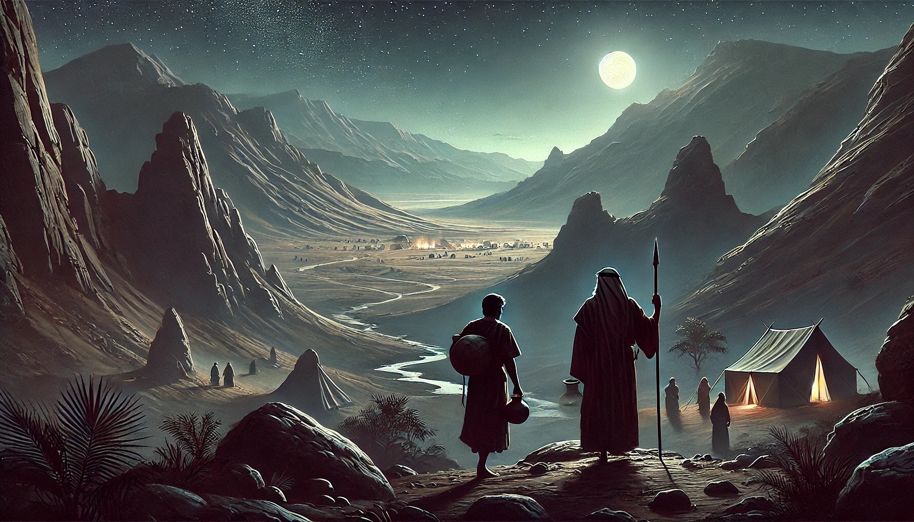 David observe de loin. Il n’est plus un fugitif traqué, mais un homme qui agit avec discernement. Il envoie des éclaireurs et confirme la présence de Saül. Puis il prend une décision audacieuse. Avec Abishaï, le frère de Joab, il s’infiltre de nuit dans le camp du roi.