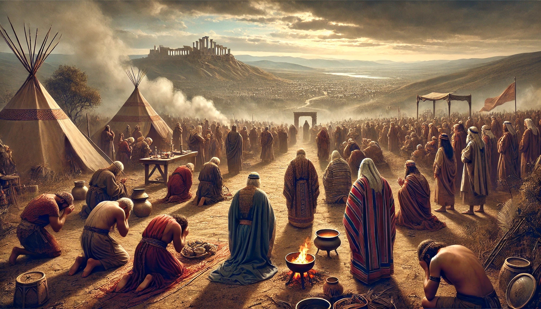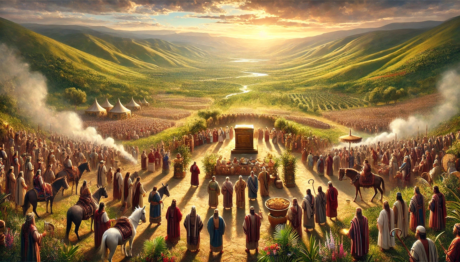 Le soleil Ă©tait haut sur les collines lorsque le peuple sortit du camp. Ce n’était pas une formation militaire, mais une assemblĂ©e pour quelque chose de plus grand. Hommes, femmes, enfants — tous se joignirent au cortĂšge. Ils traversaient un pays qui n’était pas encore conquis, mais aucune main ne se leva contre eux. Une crainte invisible de Dieu planait sur les villes alentour.