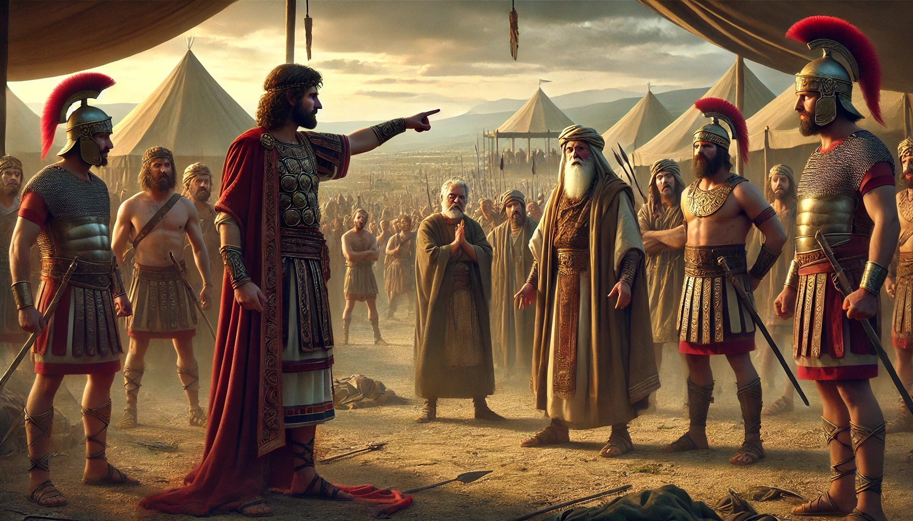 Mais la présence de David suscite l’inquiétude. Les princes des Philistins le reconnaissent immédiatement : David, l’Hébreu, le célèbre guerrier dont on chantait qu’il avait frappé des dizaines de milliers d’ennemis. La méfiance s’installe. Pour eux, un homme avec un tel passé pourrait devenir l’ennemi au moment décisif. Le souvenir de la renommée de David est plus fort que toute loyauté actuelle.