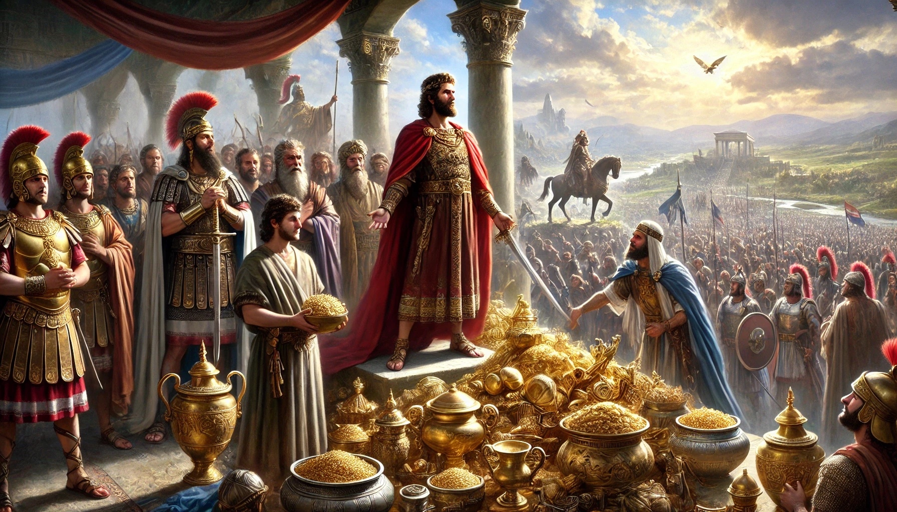 Ce qui frappe, c’est que David rassemble de grandes quantités d’or, d’argent et de bronze — mais il ne les garde pas pour lui. Il consacre tout au Seigneur. Les trésors des nations deviennent des instruments pour l’œuvre de Dieu. David sait : le véritable Roi, c’est Dieu.
