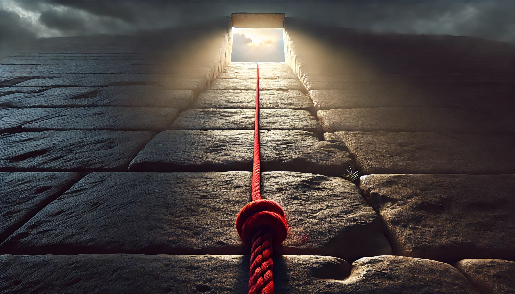 La demande de Rahab de protéger sa famille rappelle fortement la Pâque en Égypte, où le sang sur les poteaux de porte était le signe du salut. De même, la corde rouge à sa fenêtre devient le signe de sa préservation lors de la destruction de Jéricho. Rahab démontre non seulement la foi, mais aussi une loyauté d’alliance (chesed) – une confiance profonde dans le Dieu d’Israël, auquel elle s’attache volontairement. Bien qu’elle fût Cananéenne, vouée au ḥerem (le bannissement), elle devint membre du peuple de Dieu par sa foi. Comme à la Pâque, nous voyons ici : la foi et l’obéissance vont ensemble – l’alliance salvatrice demande une réponse visible. L’Évangile dans ce récit est clair : le salut vient par la grâce, mais il devient visible par une foi vécue.